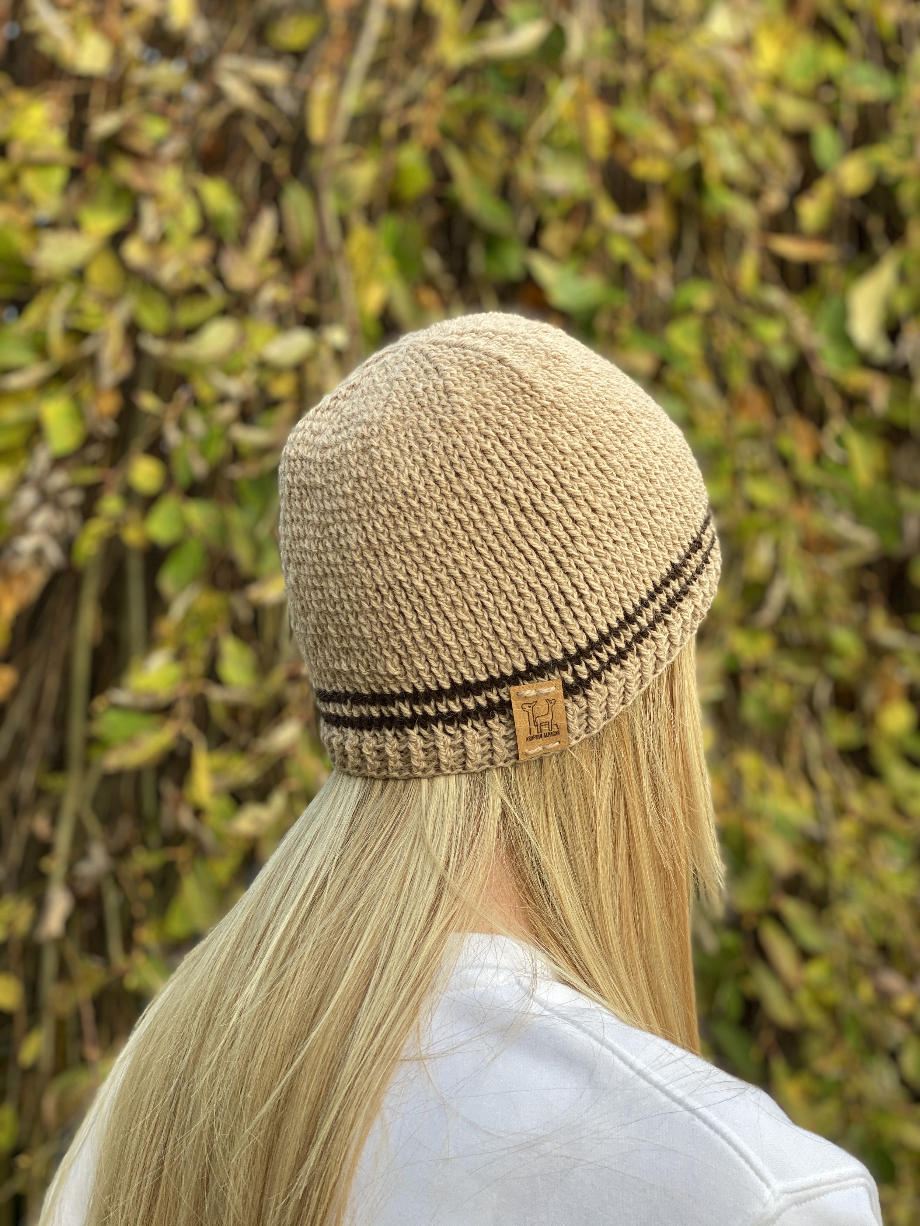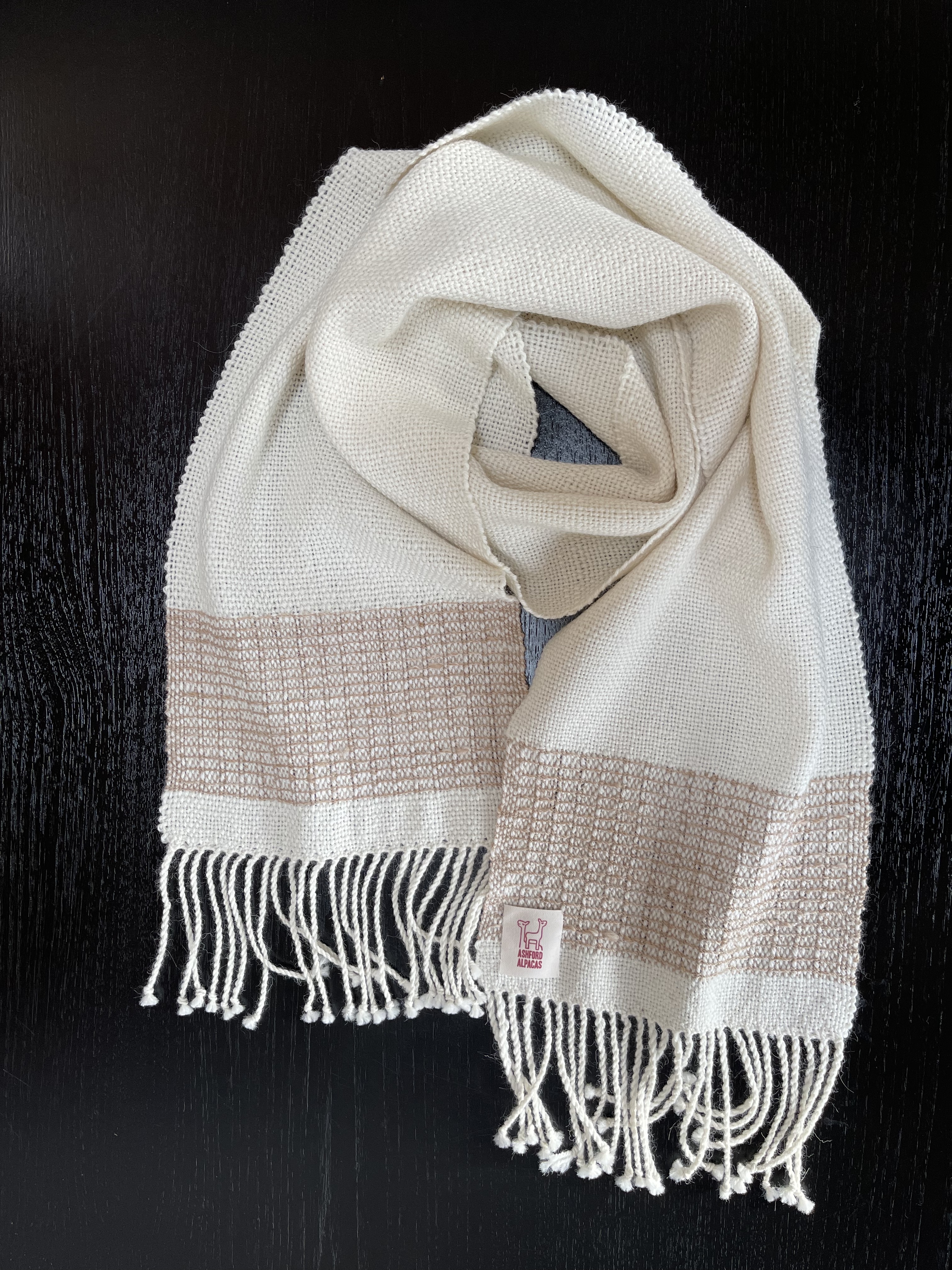 All our yarns are 100% alpaca from our herd, and come in a variety of natural colours. They are available as double knit 100g balls. Our handmade beanie hats and handwoven scarves are so comfortable to wear, as alpaca fibre has none of the ‘itch’ you can get from wool. They are very warm while still being breathable, moisture-wicking and do not form pills. As this is a natural product, you may find small remnants of hay in the yarn. You can rest assured, however, that the alpaca thoroughly enjoyed every mouthful!